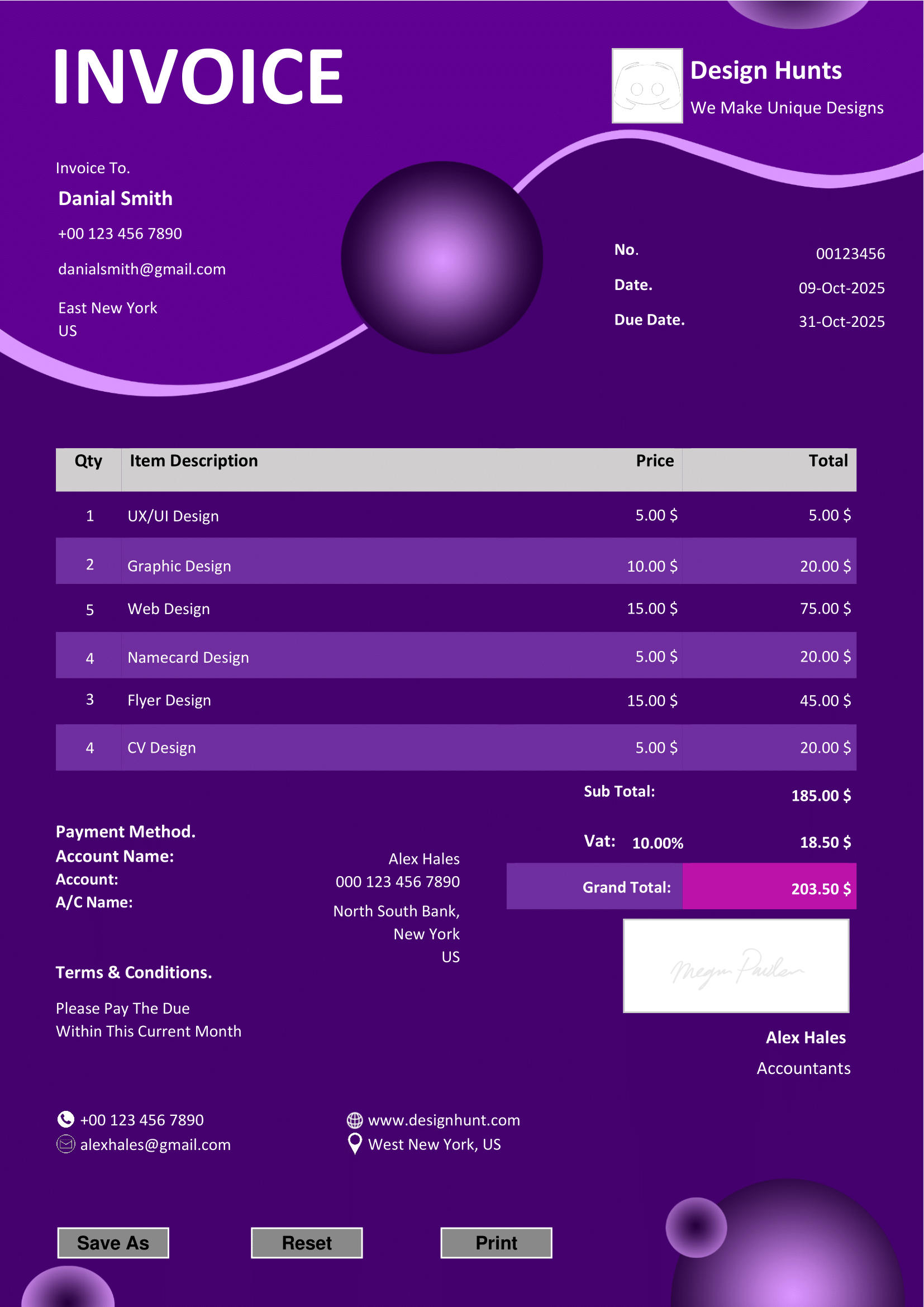 - ✅ Three Buttons included 1. Save as 2. Reset 3. Print