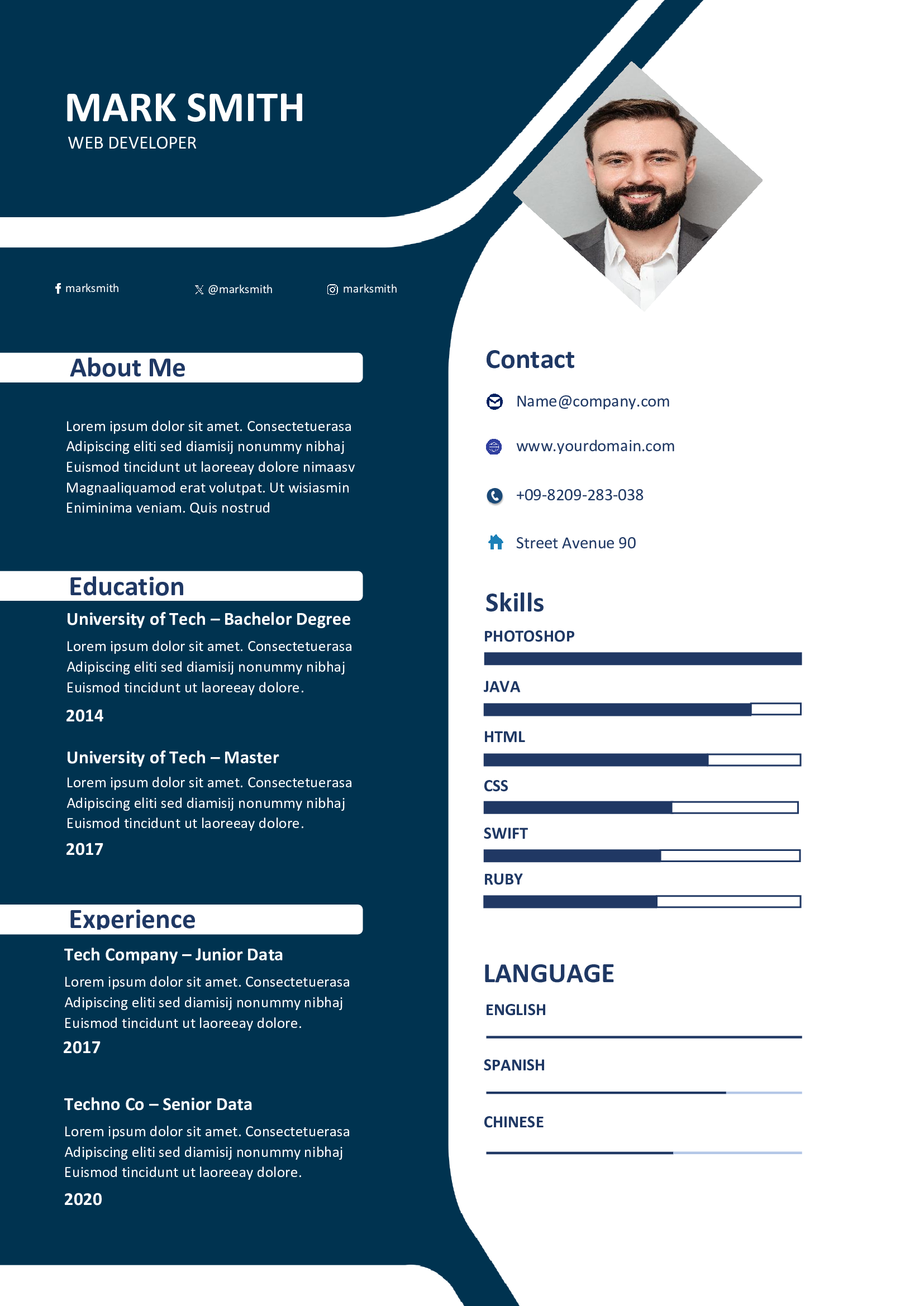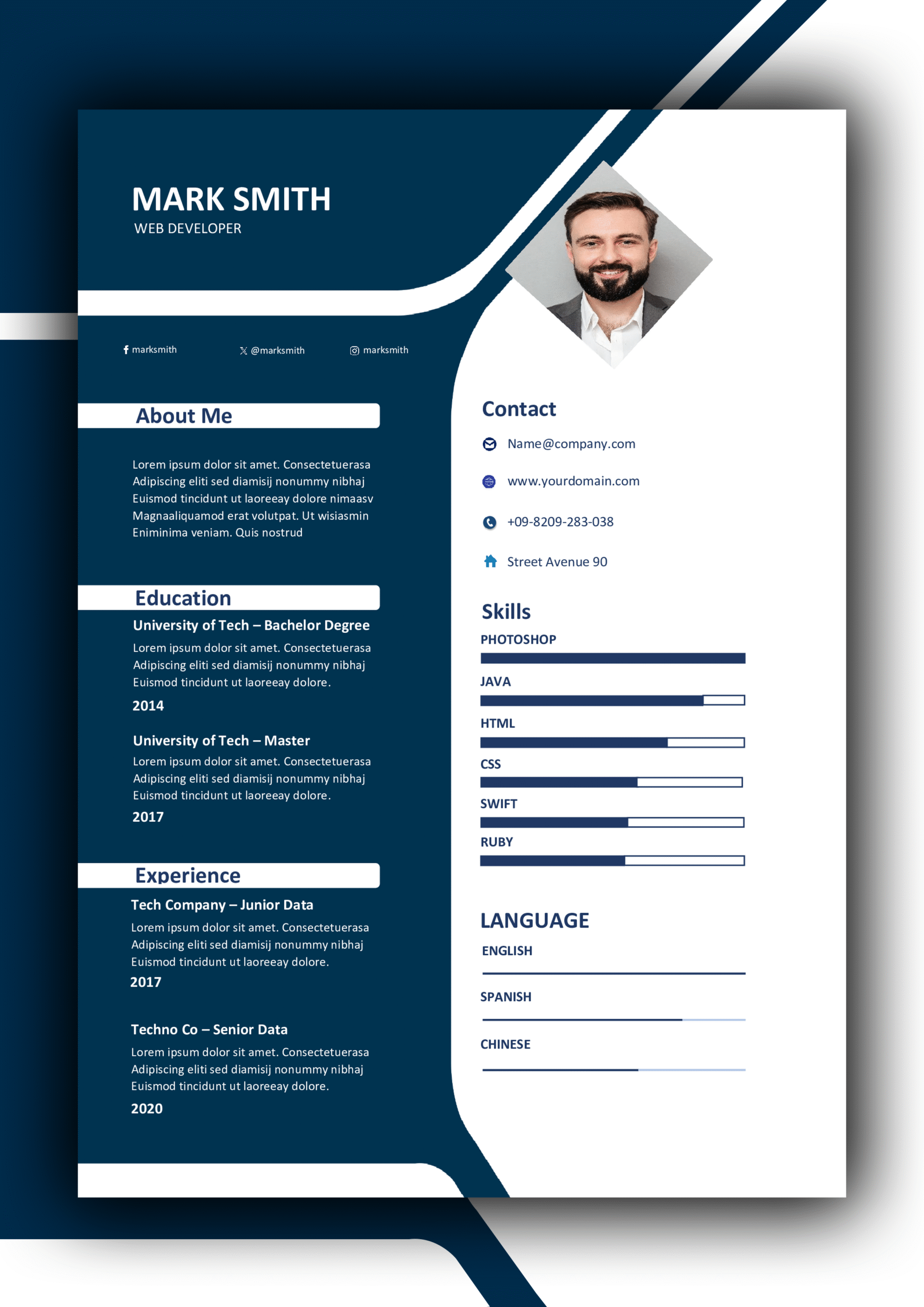 - 🎯 Two-Column CV Layout – Unique Design 6 template with organized styling