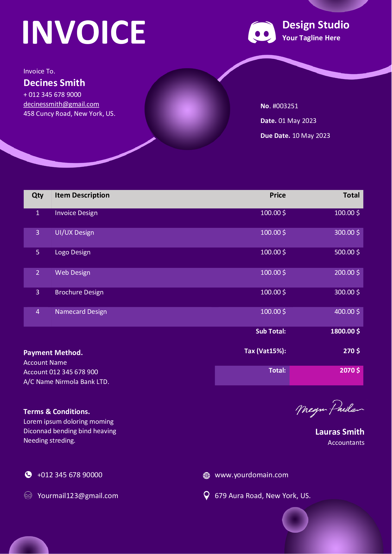 - ✅ Fully editable — Company Logo, Client Details, Invoice Number, Dates, Item Descriptions, Quantities, Rates, and Totals