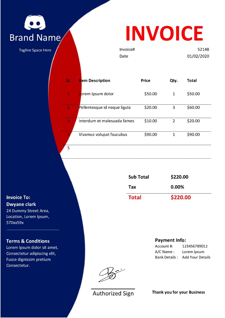 🚀 Premium MS Word Invoice Template – Fully Customizable